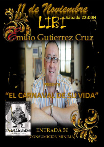 El Vagamundo acogerá el próximo 11 de noviembre un evento que tiene como protagonista a Emilio Guitérrez Cruz, más conocido como ‘Libi’, donde hablará del su trayectoria y del carnaval en general. Un evento imprescindible para conocer las impresiones del cuartetero a partir de las 22h del sábado próximo, con una entrada de 5 euros, que incluye una consumición mínima. Una oportunidad único para saber más sobre este reconocido personaje de la fiesta.