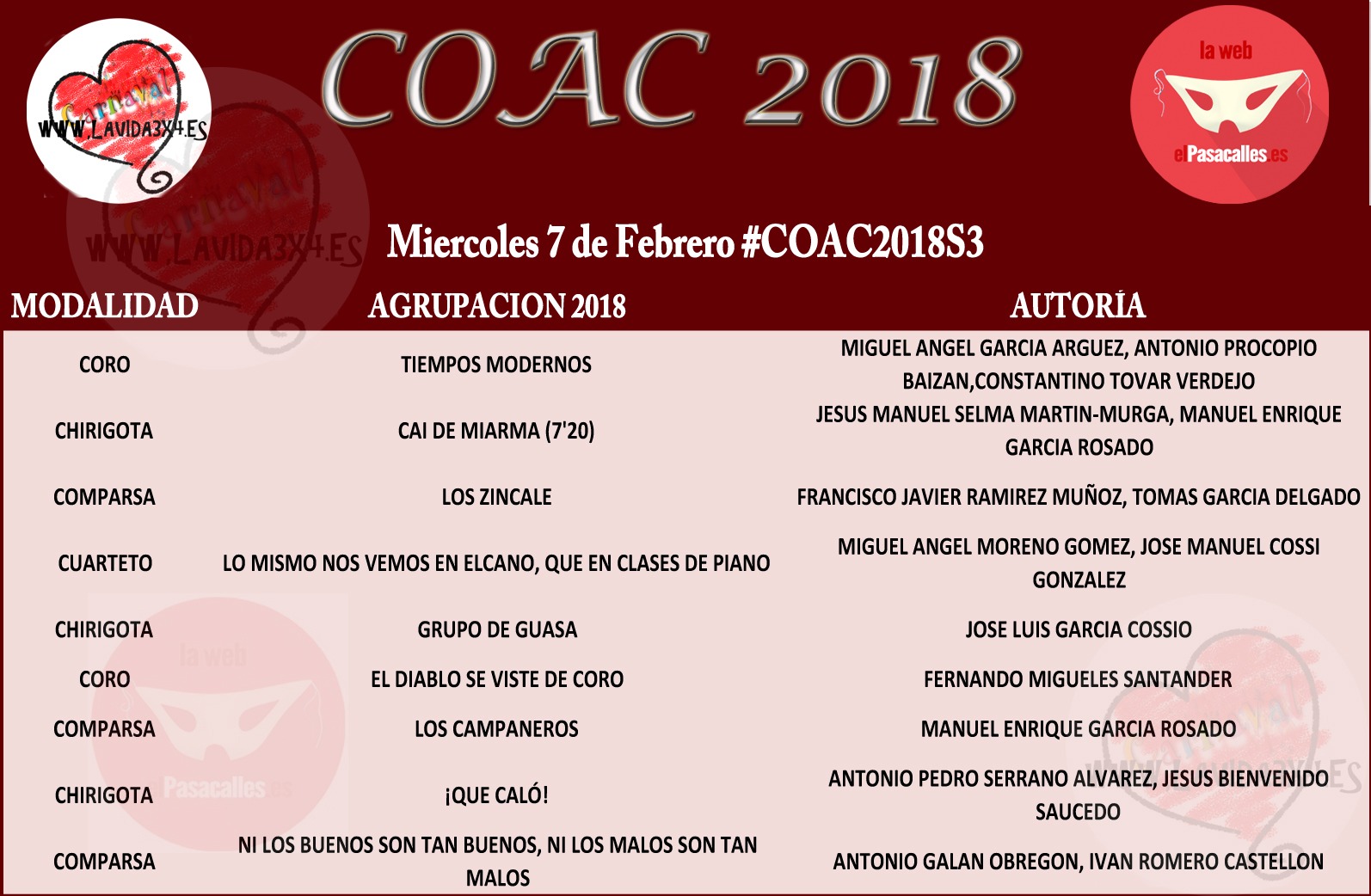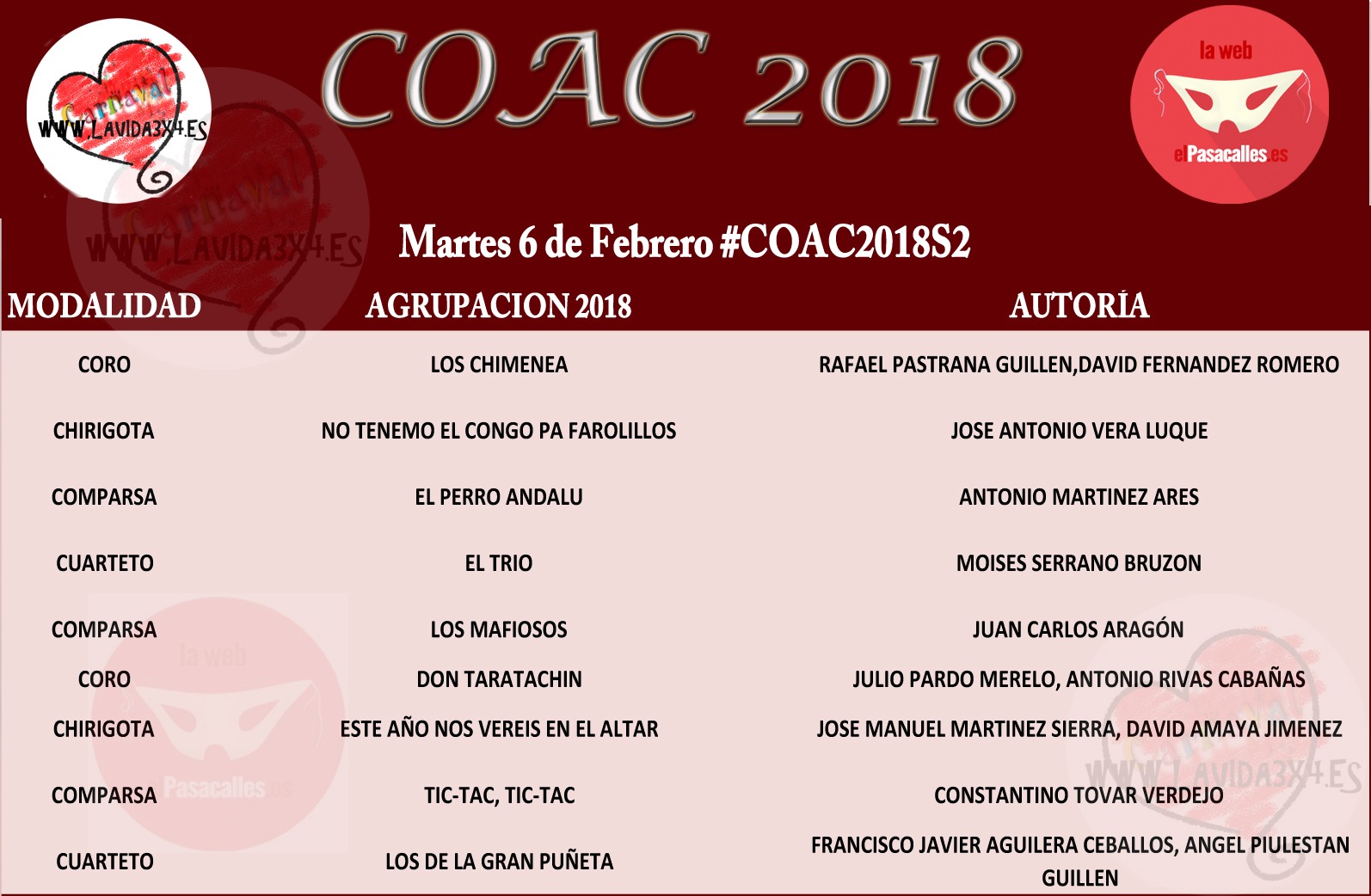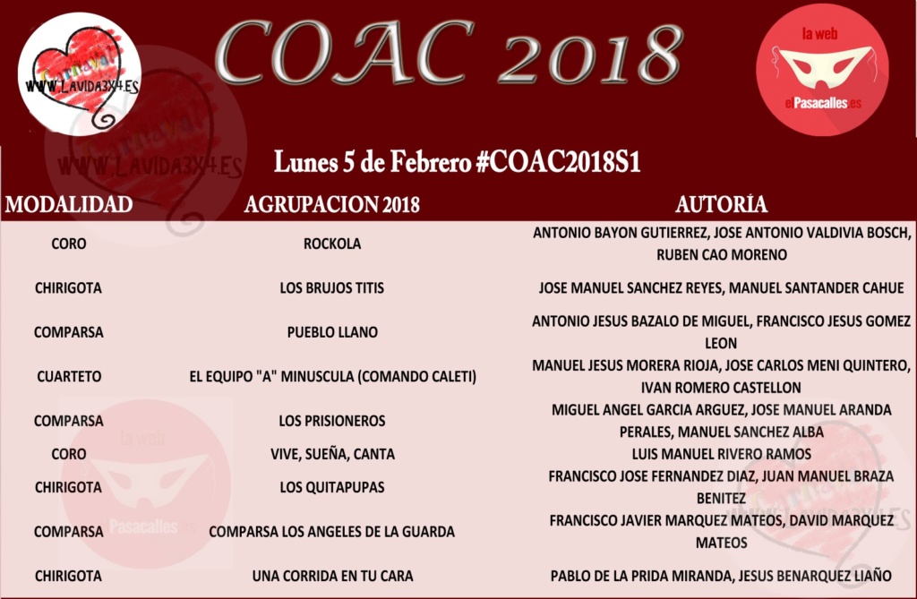 Orden de actuación de Semifinales #COAC2018
