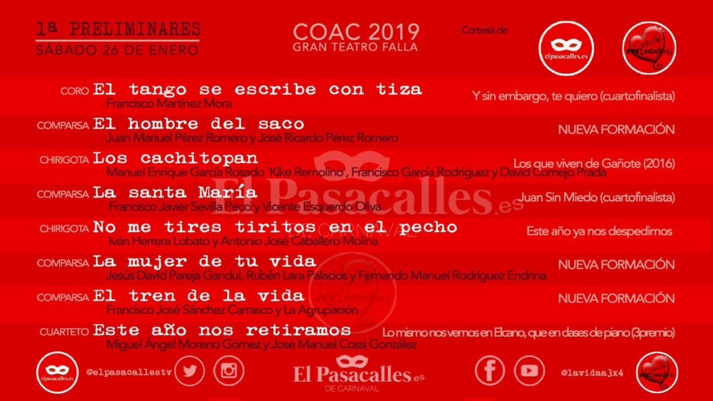 Hoy 26 de Enero comienzan las preliminares de la categoría de adultos del COAC 2019.