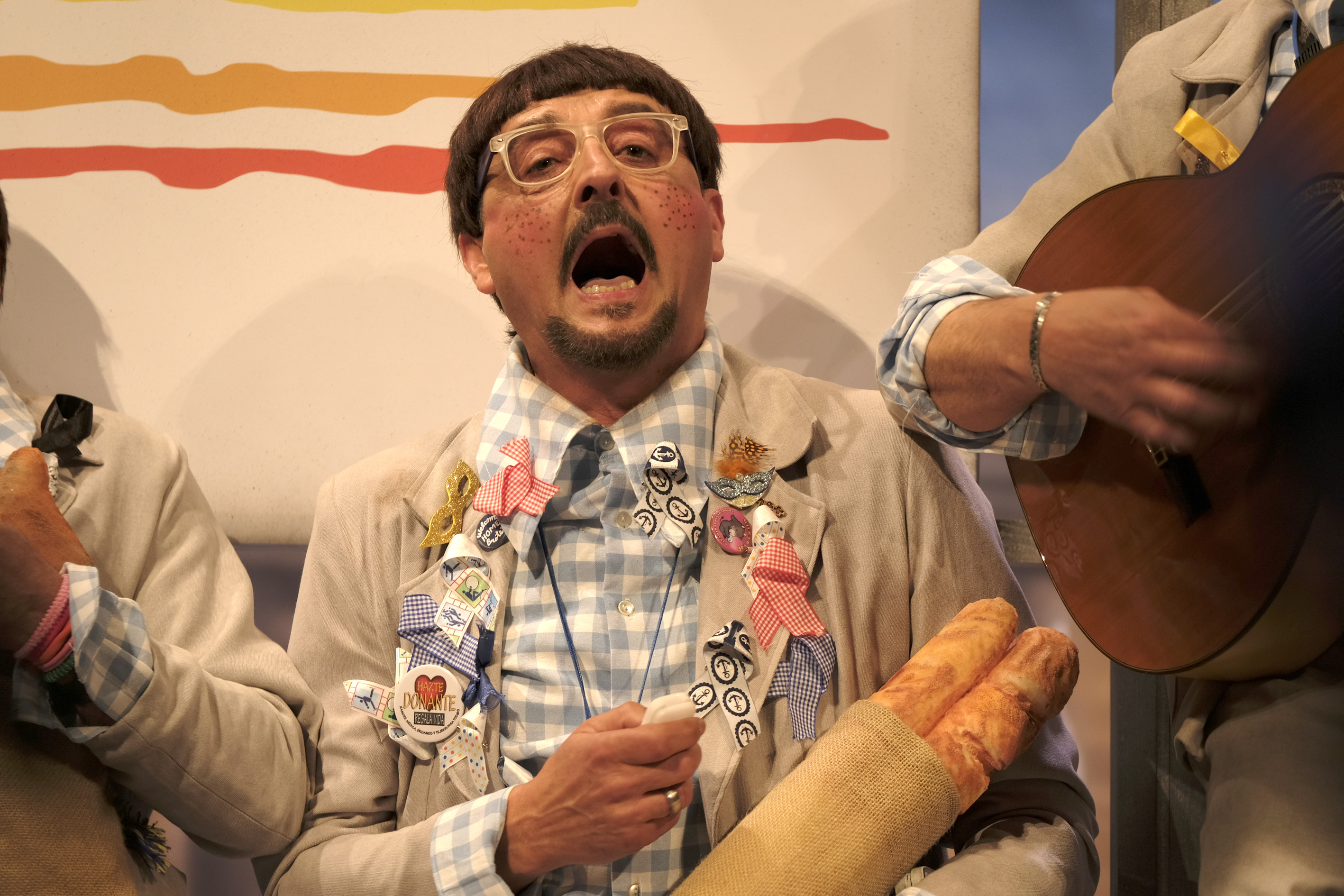 Primer cuplé a la cocina y el segundo a su detención que acaban cantando el popurrí en comisaría.